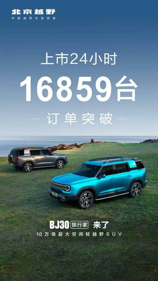在赛事头车的阵营里,还有BJ30的身影。去年,BJ30一经上市即热销,至今累计销量已经突破6万辆,长期稳坐“10万级轻越野SUV销冠”宝座。今年9月27日,BJ30旅行家重磅上市,旅行焕新价最低只需8.39万元起。凭借专业越野的能力、MPV的空间,以及A0级轿车的油耗,BJ30旅行家上市24小时,订单突破16859辆。