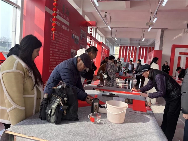 活动现场特别设置了"居民创作区",邀请社区书法爱好者和青少年共同参与春联创作。在志愿者的引导下,社区居民纷纷提笔挥毫,一幅幅充满个人特色和生活气息的春联应运而生。年过七旬的王大爷写下"黄河水甜润心田,社区情暖乐无边",表达了对美好生活的赞美;小学生则在志愿者指导下完成了人生第一副春联"勤学如黄河流不息,进步似春潮日日新"。这种"专业引领+社区共创"的模式,不仅让传统文化更接地气,更让居民从文化接受者转变为文化创造者,真正实现了文化传承的社区内生动力。