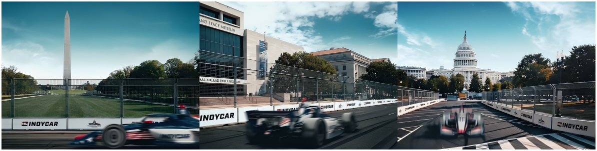 以观众便利性、壮观视野和安全性为核心设计的"自由250大奖赛"街道赛道,将让搭载大马力开轮式赛车的NTT印地赛车系列赛,在宾夕法尼亚大道上长达0.4英里的宽阔前直道上飞驰,赛道以华盛顿纪念碑和美国国会大厦为背景。赛道的维修区将位于宾夕法尼亚大道上赛道设计图中1号和2号弯之间的赛道旁边。竞争激烈的印地赛车车手们还将在这条富有挑战性且风景如画的赛道上,驶过史密森尼国家航空航天博物馆、华盛顿纪念碑、国家美术馆和国家档案馆(下图效果图)。