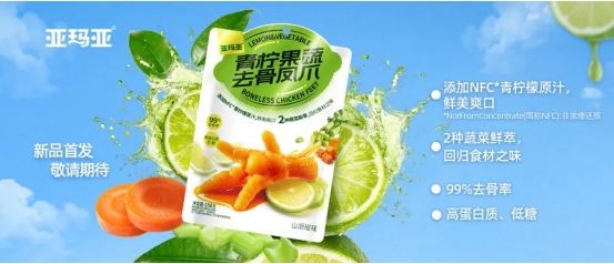 我们以今年糖酒会他们推出的新品来举例。作为亚玛亚的基本盘,全新推出的去骨柠檬凤爪系列(酸辣、蒜香双味),依然坚持其核心的24小时低温冷泡工艺,在保障Q弹口感的同时实现汤汁的深度渗透。但在原料与配方端,变化已然发生:新品严选国产优质鸡爪,更重要的是全面剔除了脱氢乙酸钠,以天然无添加精准回应了当下消费者对清洁标签的诉求。