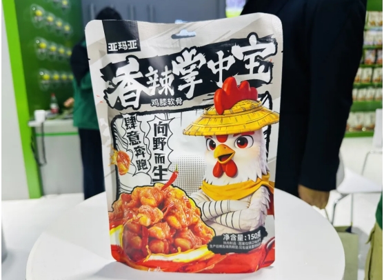 三种口味的原料均锁定在“一只鸡仅2颗”的稀缺鸡膝软骨上。这种对原料稀缺性与营养价值的双重强调,标志着产品策略已从单纯的“好吃”进阶为“好吃且健康”。“以前做鸡爪,大家比的是谁更辣、谁更便宜。现在,经销商和消费者问的是:你的鸡爪安不安全?原料靠不靠谱?”亚玛亚研发负责人说。